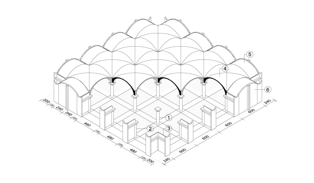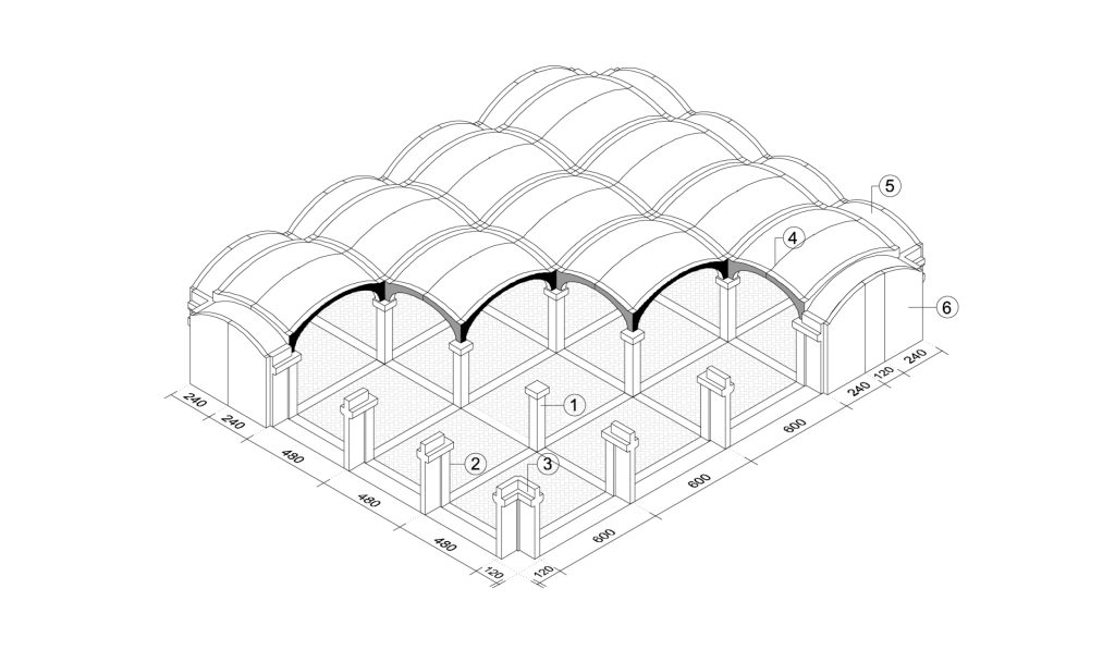 Il sistema architettonico a volte con maglia strutturale 6,00 x 4,80, il primo ad essere utilizzato ed impiegato nei casi Anteo e Berlucchi ad esempio, il sistema architettonico con maglia quadrata 6,00 x 6,00 che risolve il problema di avere archi di sostegno delle volte di dimensione uguale e il sistema architettonico a volte con maglia strutturale 7,00 x 7,00.
