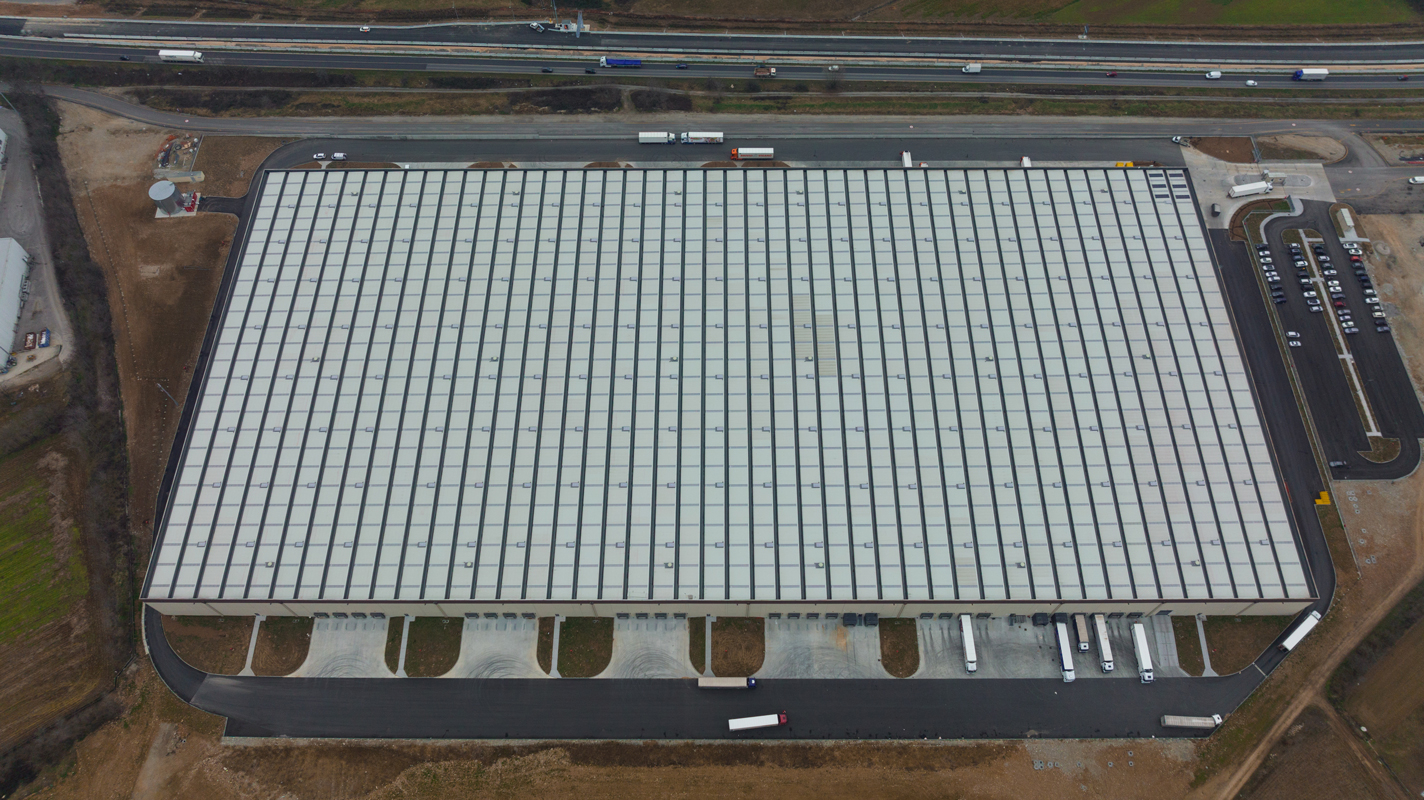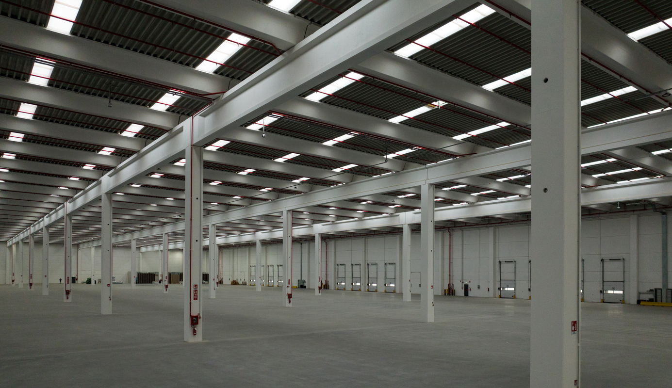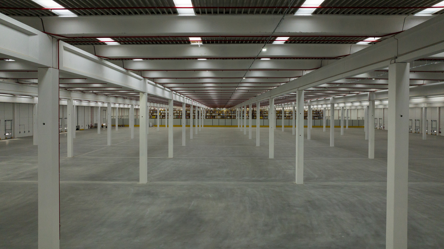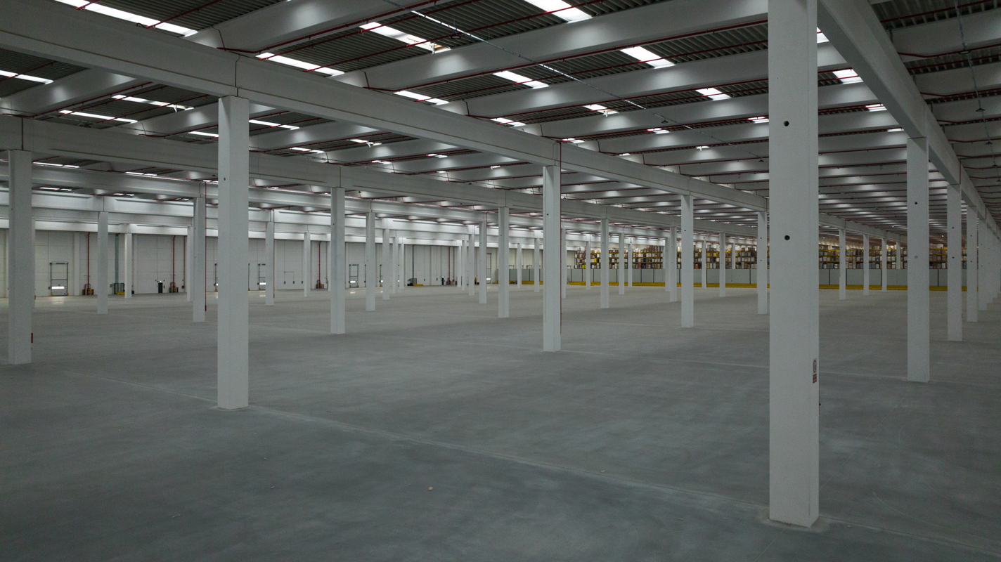 Una struttura prefabbricata modulare con travi e pilastri in cemento caratterizzata da pilastri alti e snelli, ampie luci e spazi interni generosi che consentono la massima efficienza e sicurezza nella movimentazione merci, per un magazzino automatizzato d’avanguardia.