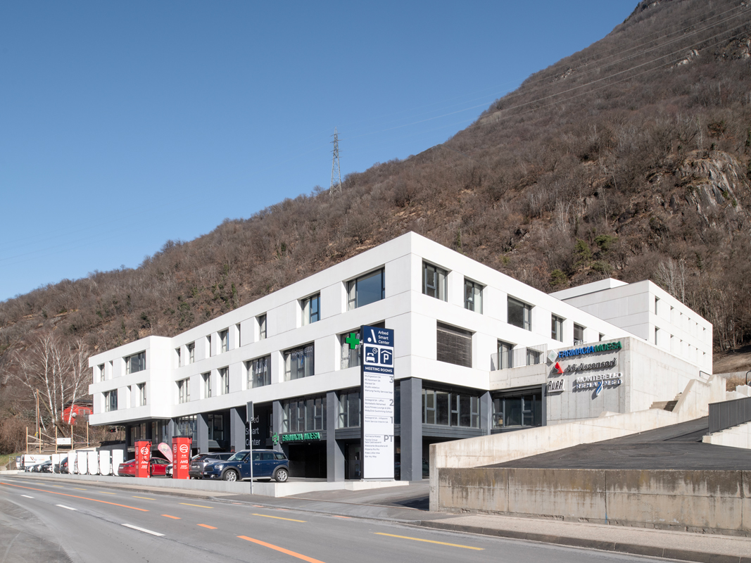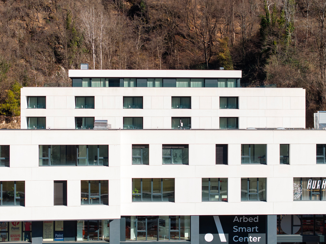 L’Arbed Smart Center è un centro multifunzionale all’avanguardia, il cui progetto è stato messo a punto con la collaborazione di diversi economisti della scuola universitaria SUPSI (Scuola universitaria Professionale della Svizzera Italiana), e sviluppato, tra gli altri, dall’ingegnere strutturista Michele Graenacher dello studio Galli & Associati SA. Il complesso, che sorge in un contesto paesaggistico di rilievo ed è composto da due corpi di cinque e quattro piani con un’ampia corte interna, per una superficie totale di circa 13.000 mq, unisce diverse funzioni (terziario, commerciale, accoglienza, ristorazione e wellness) in un nuovo concetto di business living volto a riequilibrare il rapporto fra persona e ambiente.