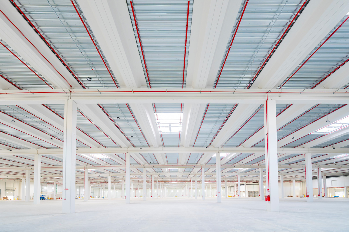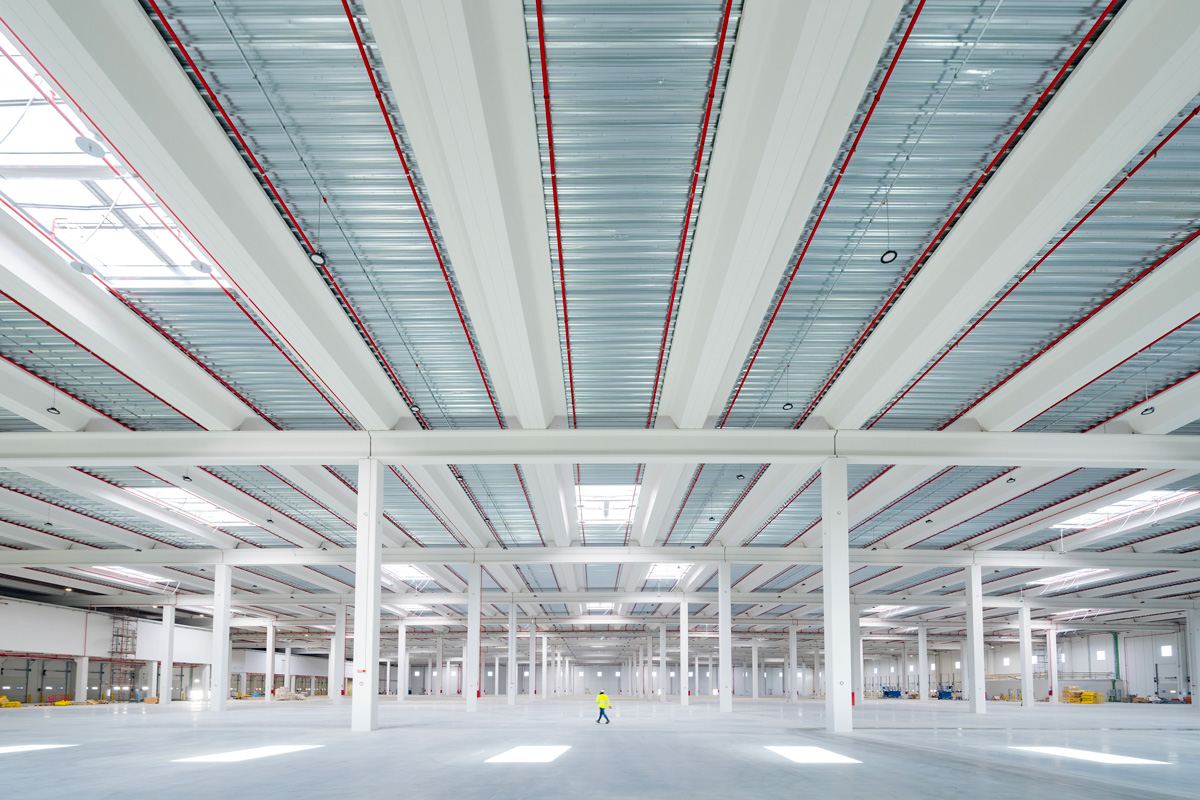 Per quanto riguarda la sicurezza, la struttura garantisce una resistenza al fuoco REI 120, e il sistema antincendio a sprinkler modello ESFR 22 è connesso al serbatoio di riserva idrica e alle pompe collocate nell’apposito locale.