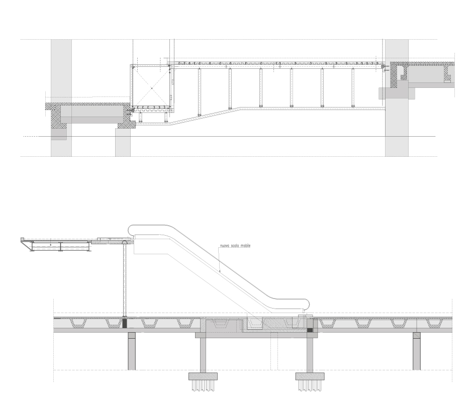 L’intervento è stato impegnativo da un punto di vista strutturale. In particolare, è stata modificata la distribuzione interna, ricollocando le due scale mobili, prima poste al centro, alle due estremità della struttura, per favorire una migliore logistica dei flussi e dei percorsi. Ciò ha richiesto la posa di micropali nel terreno, a sostegno delle nuove fondazioni e delle strutture sovrastanti, e la creazione di un foro nell’impalcato esistente, dove poter installare le nuove scale. È stata inoltre sostituita una rampa mobile con una struttura metallica con elevatore per disabili e ricostruita una porzione di solaio. Anche l’impianto meccanico, elettrico ed antincendio del Centro sono stati oggetto di rinnovamento e messa a norma.