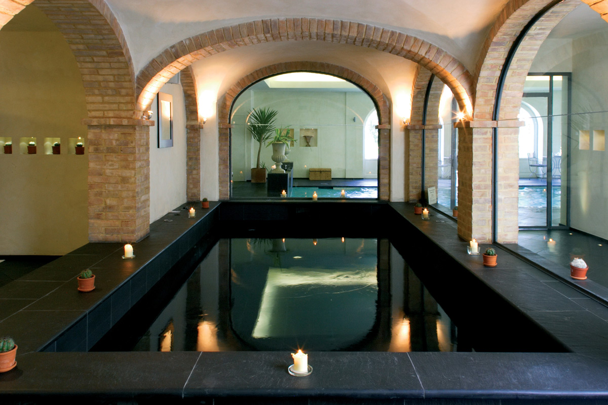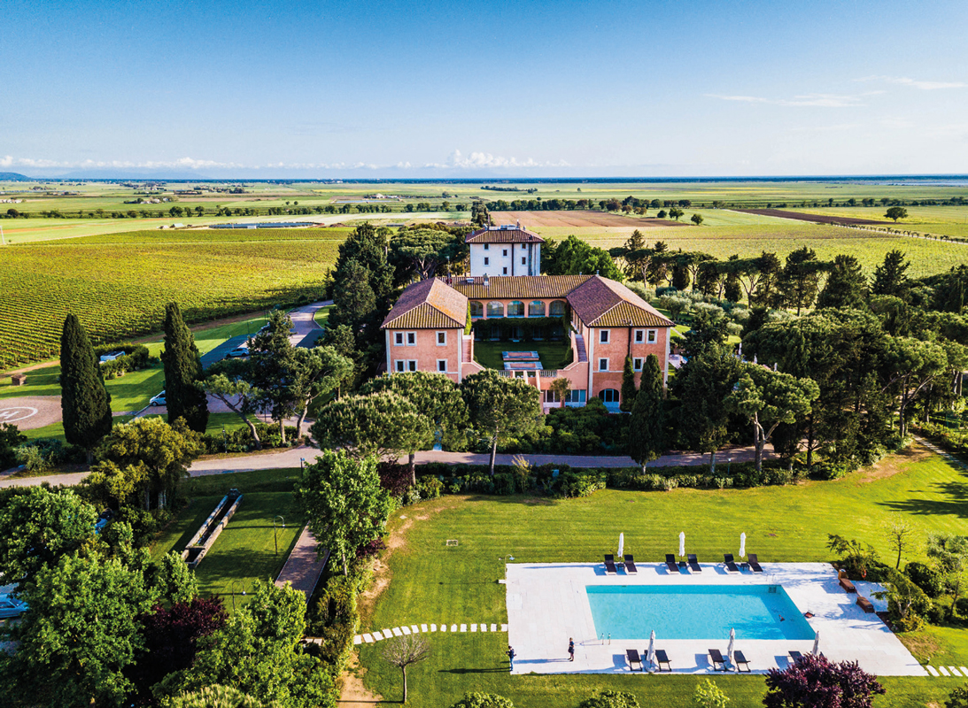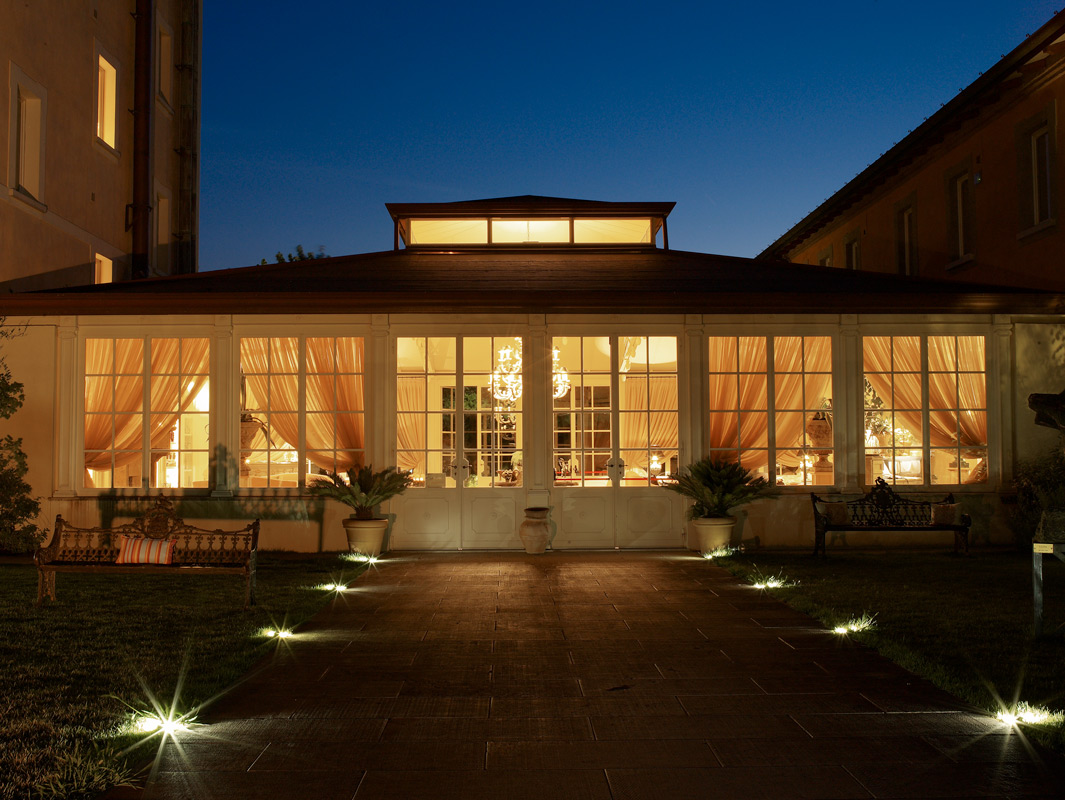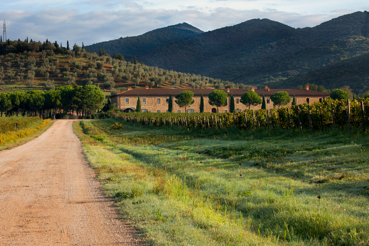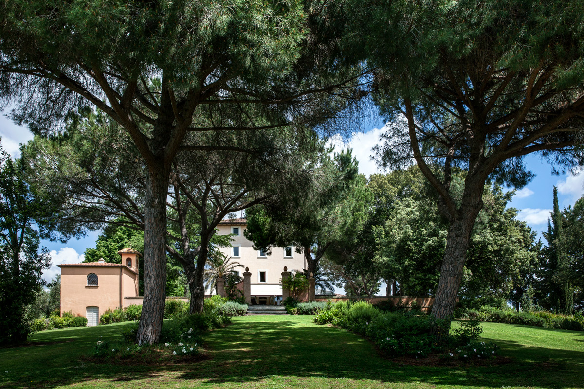L’intera struttura si presenta con una pregevole armonia architettonica, alla quale contribuisce l’utilizzo di legno lamellare, posto in sinergia ai prefabbricati. Nella villa e nella fattoria, collegate fra loro da un giardino d’inverno, sono disposte 33 camere che godono di un’incantevole vista sulla campagna circostante, coperta di oliveti e vigneti. L’architetto Ettore Mocchetti ha saputo trasformare l’antica tenuta in un luogo esclusivo di relax e di benessere, all’insegna delle più autentiche tradizioni toscane.
