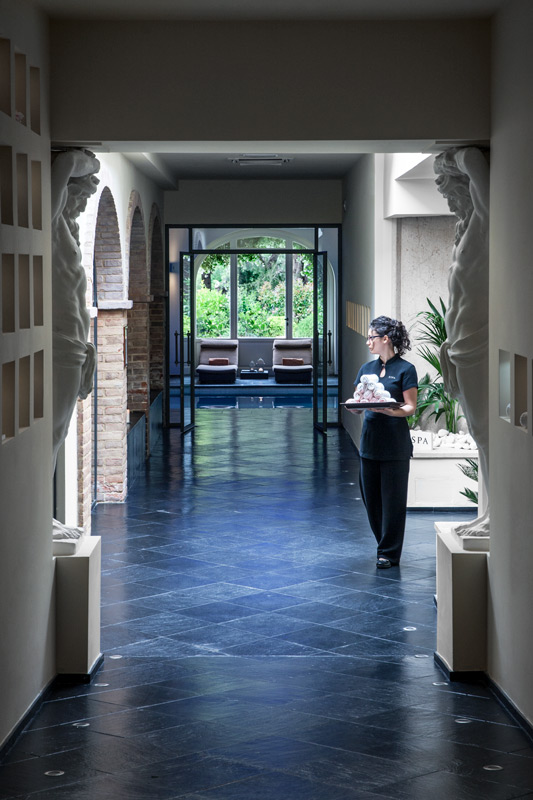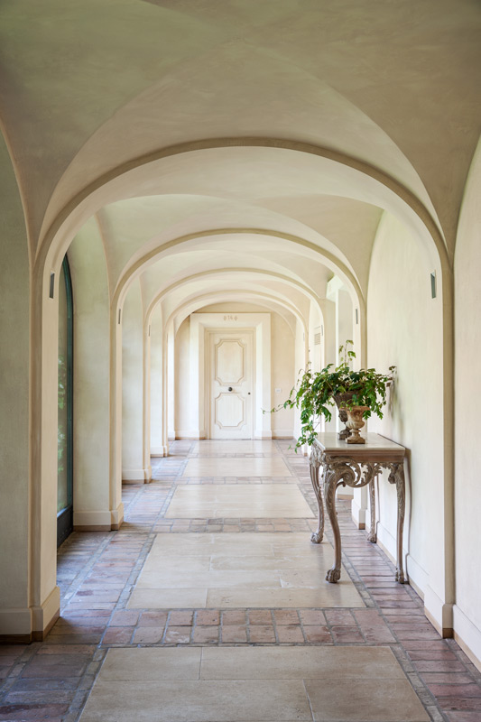 All’inizio dei lavori di ristrutturazione, il complesso presentava quattro fabbricati di grandi dimensioni, tre annessi di medie dimensioni, due stalle di recente costruzione e alcuni annessi minori. Il romitorio, risalente al XII secolo e già monastero, era l’unica struttura che si presentava in condizioni discrete, in quanto oggetto di un recente restauro. Con l’intervento di ristrutturazione, interamente realizzato da Moretti Modular Contractor, ogni particolare della tenuta è stato riportato al suo aspetto originario dove possibile, oppure armonizzato ai principi estetici seguiti per i due complessi principali, villa e fattoria. Sono state fatte collaborare le strutture originarie, prevalentemente travetti in legno, con strutture di rinforzo realizzate con elementi prefabbricati in cemento o acciaio. In questo modo si sono anche potuti spostare i livelli degli impalcati interni, recuperando nuove altezze e nuove volumetrie, salvaguardando le strutture in legno originarie.