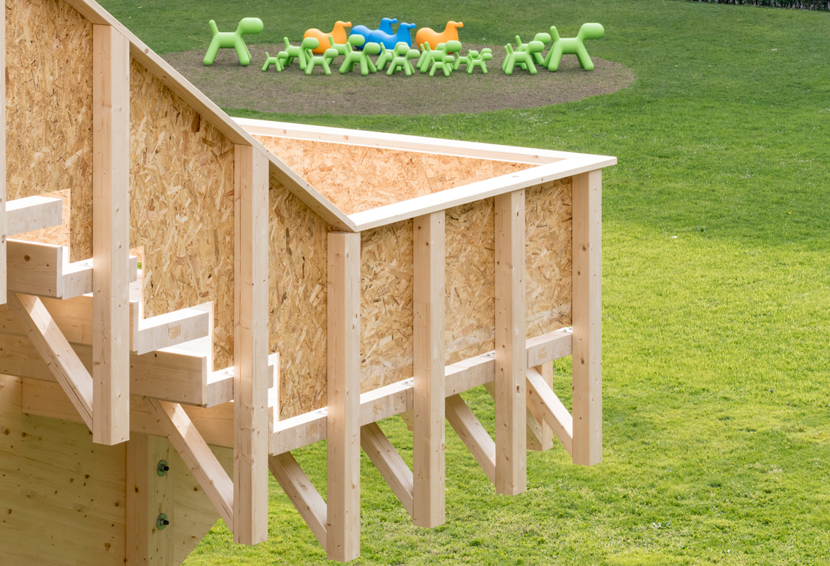 Moretti Modular Contractor si è anche occupata del progetto esecutivo dell’opera, che include un ballatoio palcoscenico e funziona anche da gradinata per sedersi e spazio di convivialità e riflessione.