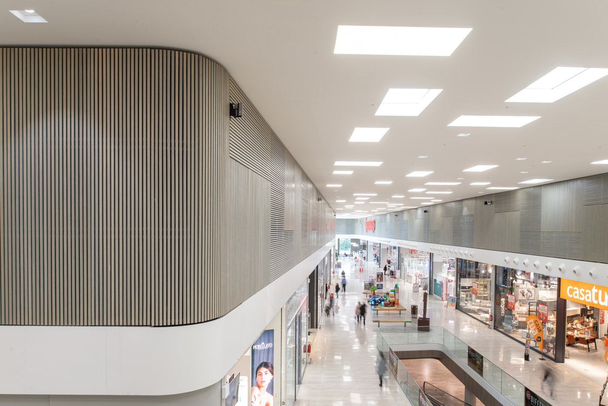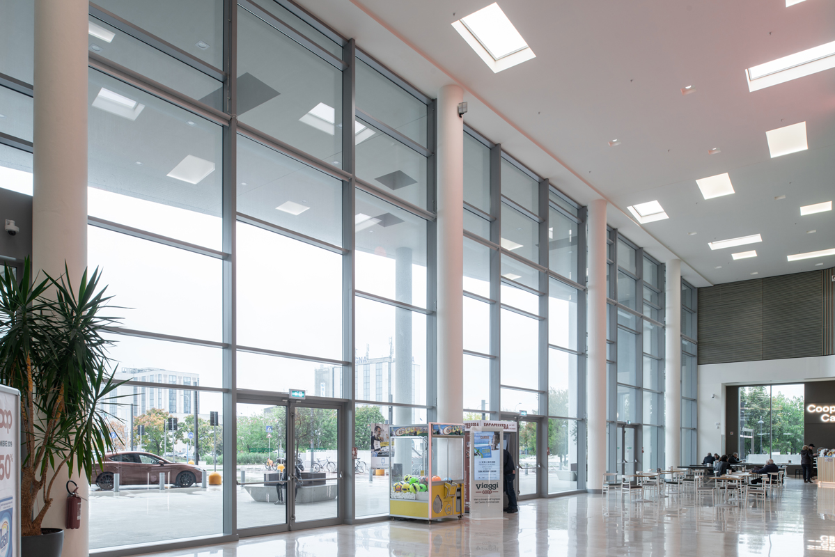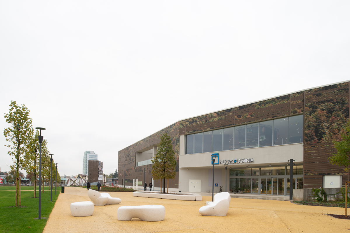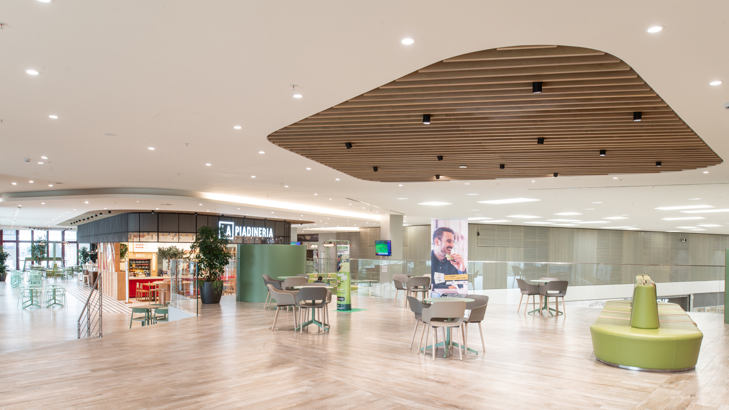 Il piano terra dell’edificio è occupato da un ipermercato da 6.200 mq specializzato e da altri 3.600 mq dedicate a tre medie superfici commerciali; sempre al piano terra è inoltre collocata una galleria commerciale passante di 1.450 mq su cui si affaccia una dozzina di piccoli negozi, mentre al primo piano è collocata un’area food di 1.000 mq, uffici e altre attività direzionali, oltre a una vasta terrazza (aperta al pubblico) che si affaccia direttamente sul parco.