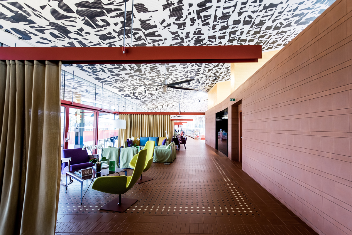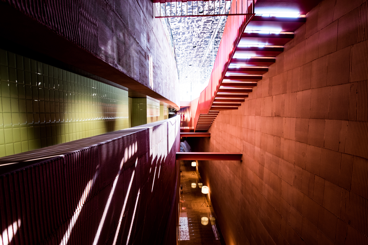 Sotto il profilo costruttivo, Moretti Modular Contractor ha realizzato l’intera struttura del Villaverde Hotel & Resort in acciaio, così da poter da un lato assecondare il disegno architettonico originale di un edificio lungo ben 120 m, con torsioni e forme complesse che richiamano un paraboloide iperbolico, dall’altro assicurarne la ideale rispondenza ai severi requisiti antisismici richiesti. Ciò ha reso possibile l’impiego di pilastrini esili, dal momento che non devono sostenere le spinte orizzontali dell’edificio, rinviate, attraverso l’utilizzo di “shock-transmitter”, ai quattro vani scala interni e alle due estremità del complesso. Ulteriore elemento che caratterizza l’intervento è la grande scala lunga 60 m, che si sviluppa lungo il muro di contenimento dell’edificio, fungendo da collegamento fra i quattro piani. La ricerca del “su misura” connota il Villaverde Hotel & Resort anche nelle finiture e negli arredi, oltre che nelle soluzioni strutturali.
