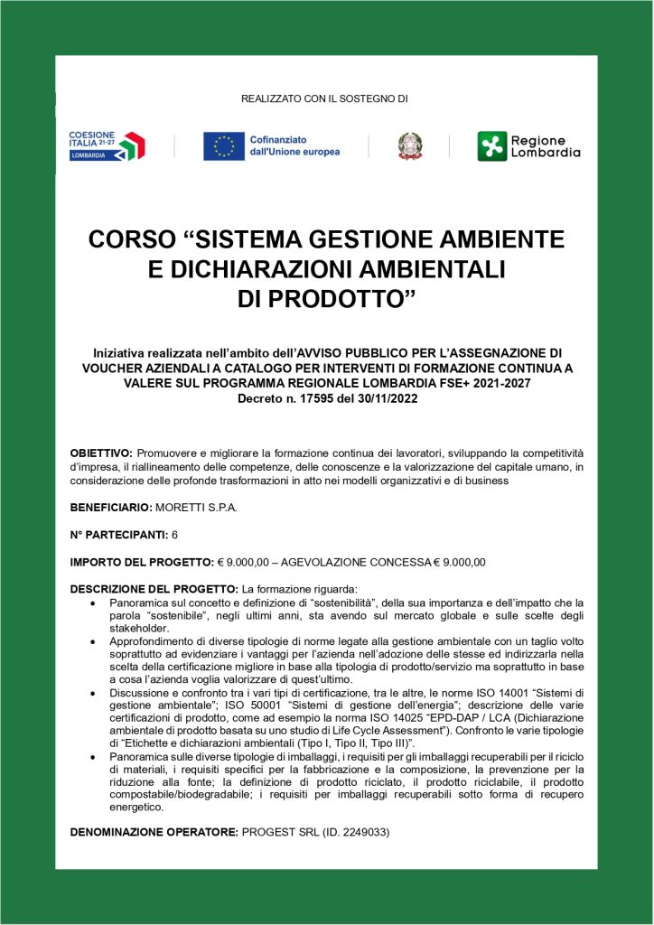 Il corso di gestione ambientale e dichiarazioni ambientali di prodotto proposto ai propri collaboratori da Moretti Modular Contractor, grazie al contributo di Regione Lombardia ha fornito ai partecipanti una panoramica approfondita sul concetto di sostenibilità e sulle norme legate alla gestione ambientale.